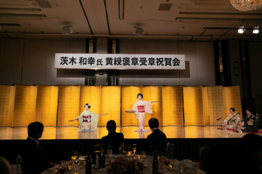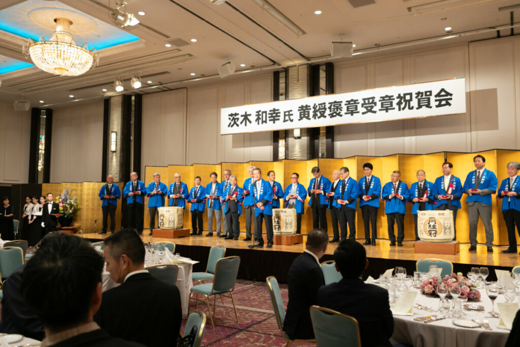 これを記念し、2025年9月28日にホテルオークラ京都4階「暁雲の間」で「黄綬褒章受章祝賀会」を開催する運びとなりました。当日は業界関係者の方々、本人の知人、家族など約160名の方々にご臨席いただきました。