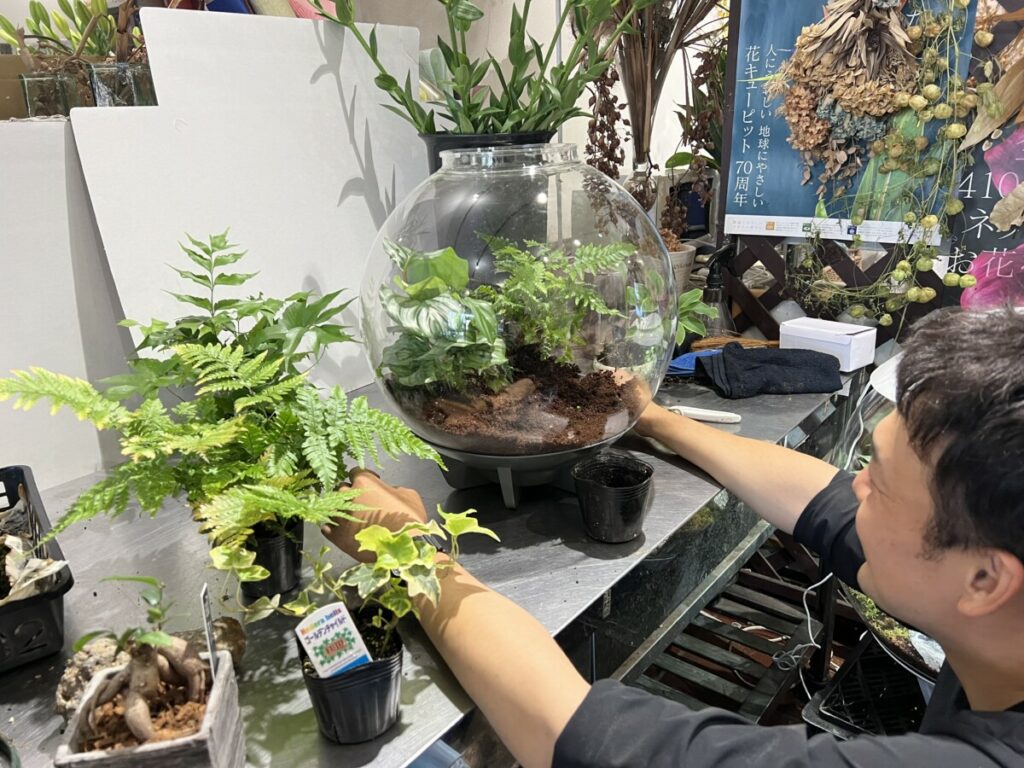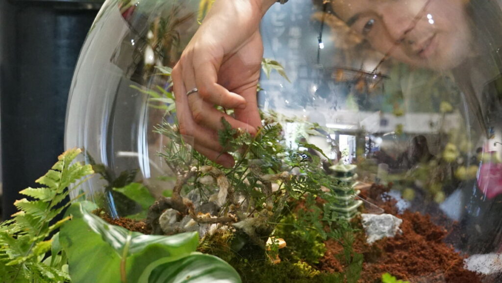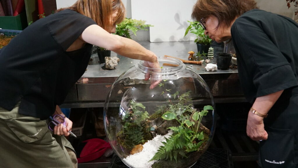 私たちは、「自分たちで作った経験がなければ、設置の際にどんなことが起こるのか、どんな植物がテラリウムに向いているのかを本当の意味でお客様にお伝えできない」と考えました。