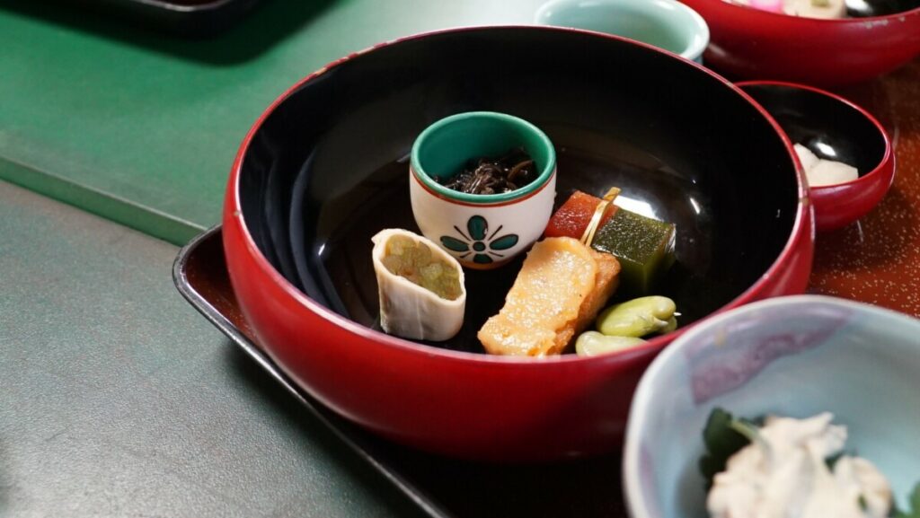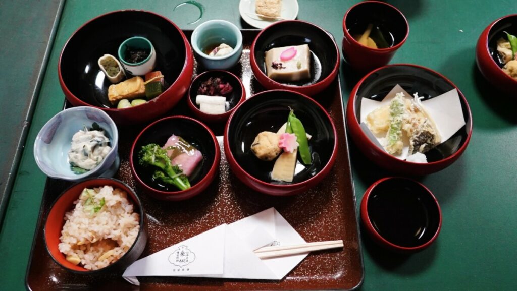 その後、研修の一環として、大徳寺 大慈院にある「京の精進料理 泉仙」にて精進鉄鉢(てっぱつ)料理をいただきました。