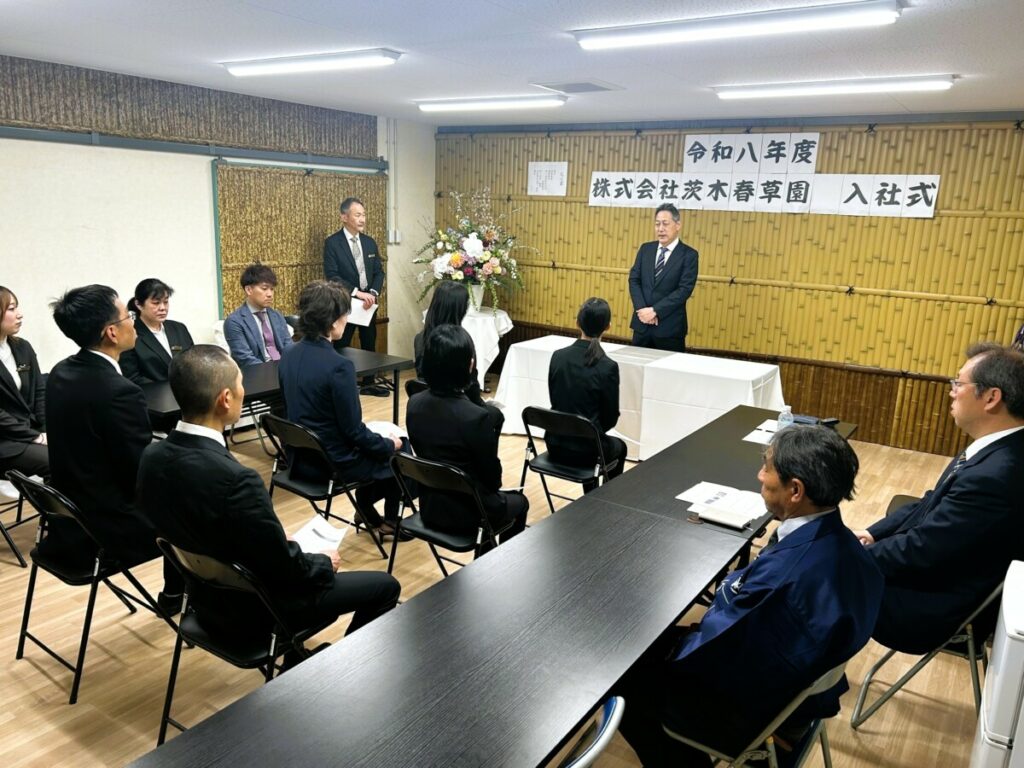 入社式では、社長からの歓迎の挨拶に対し、新入社員の皆さんからも力強い抱負をいただきました。